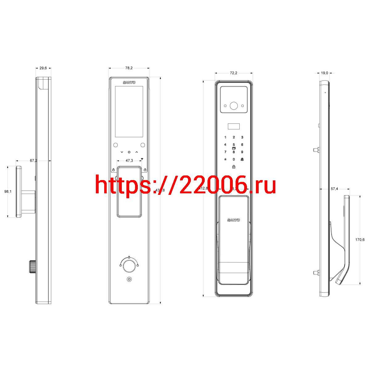 - Электронный замок Sanyo D300 Tuya DM70 с WiFi, с распознаванием лиц, черный в Воронеже недорого
