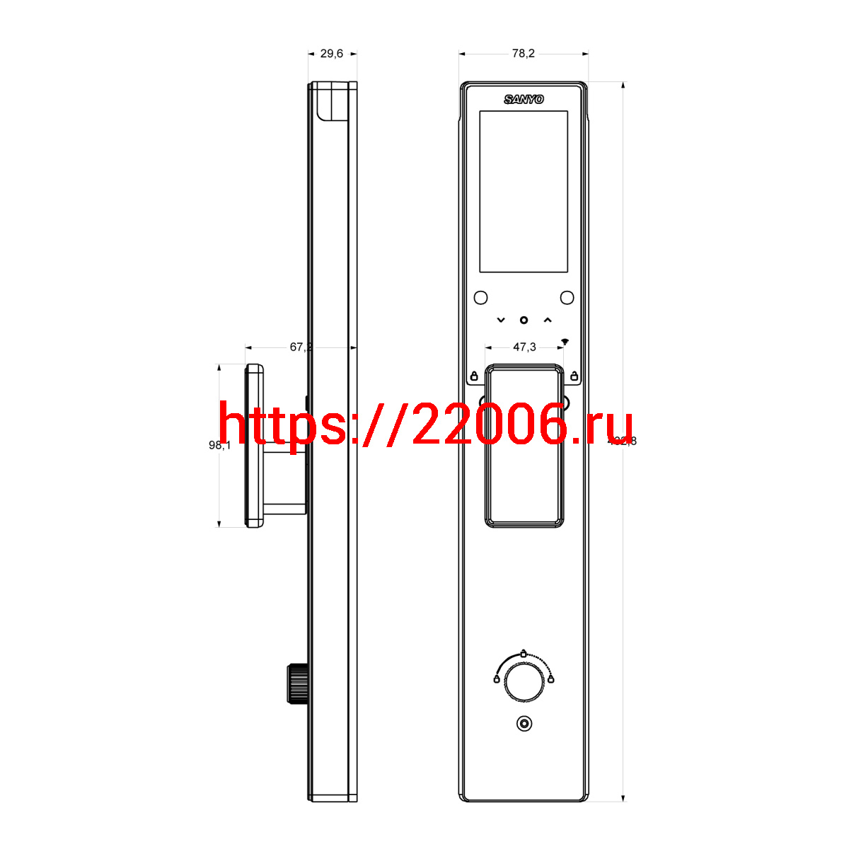 - Электронный замок Sanyo D501 Tuya DM70 с WiFi, ручка скоба 1800 мм, черный в Воронеже недорого