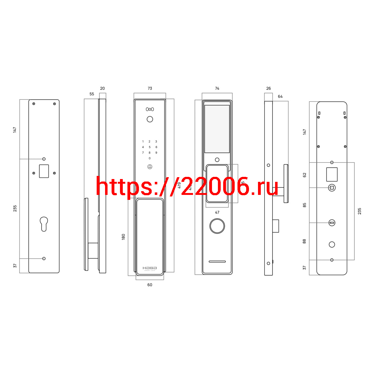 - Замок врезной электронный Hogo V07 с распознаванием лица, черный в Воронеже недорого