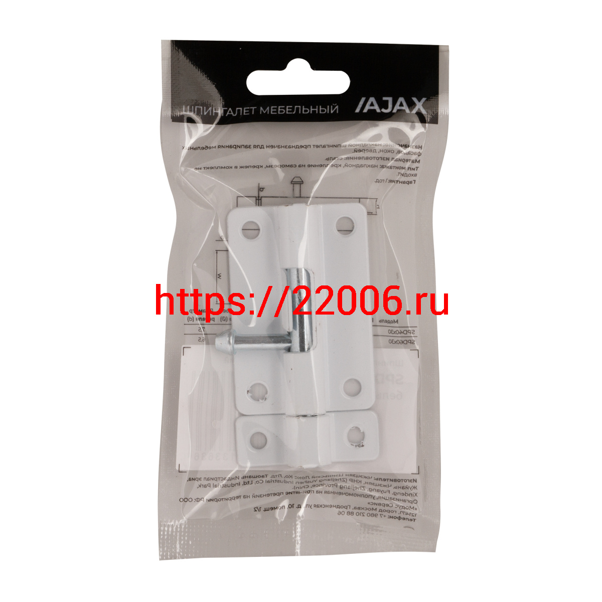 - Шпингалет Ajax (Аякс) мебельный металлический SPD60х30 WH белый в Воронеже недорого