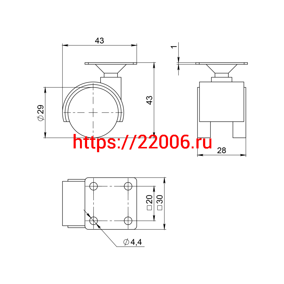 - Опора двухколесная Ajax (Аякс) с площадкой WL/B-30-2P/15kg пластик в Воронеже недорого