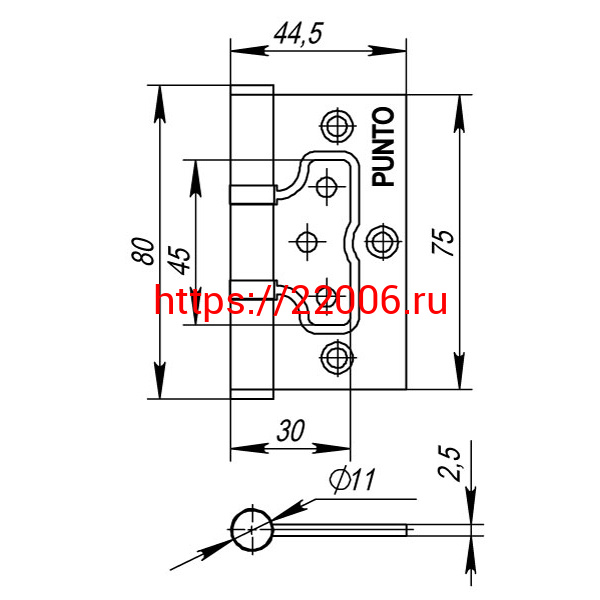 - Петля Punto (Пунто) универсальная без врезки IN3200W-HD PN (200-2B/HD 75x2,5) мат. никель в Воронеже недорого