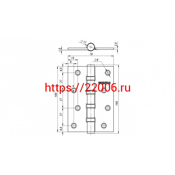 - Петля Punto (Пунто) универсальная IN4100U-HD AB (4B/HD 100х70х2.5) бронза ПОДВЕС в Воронеже недорого