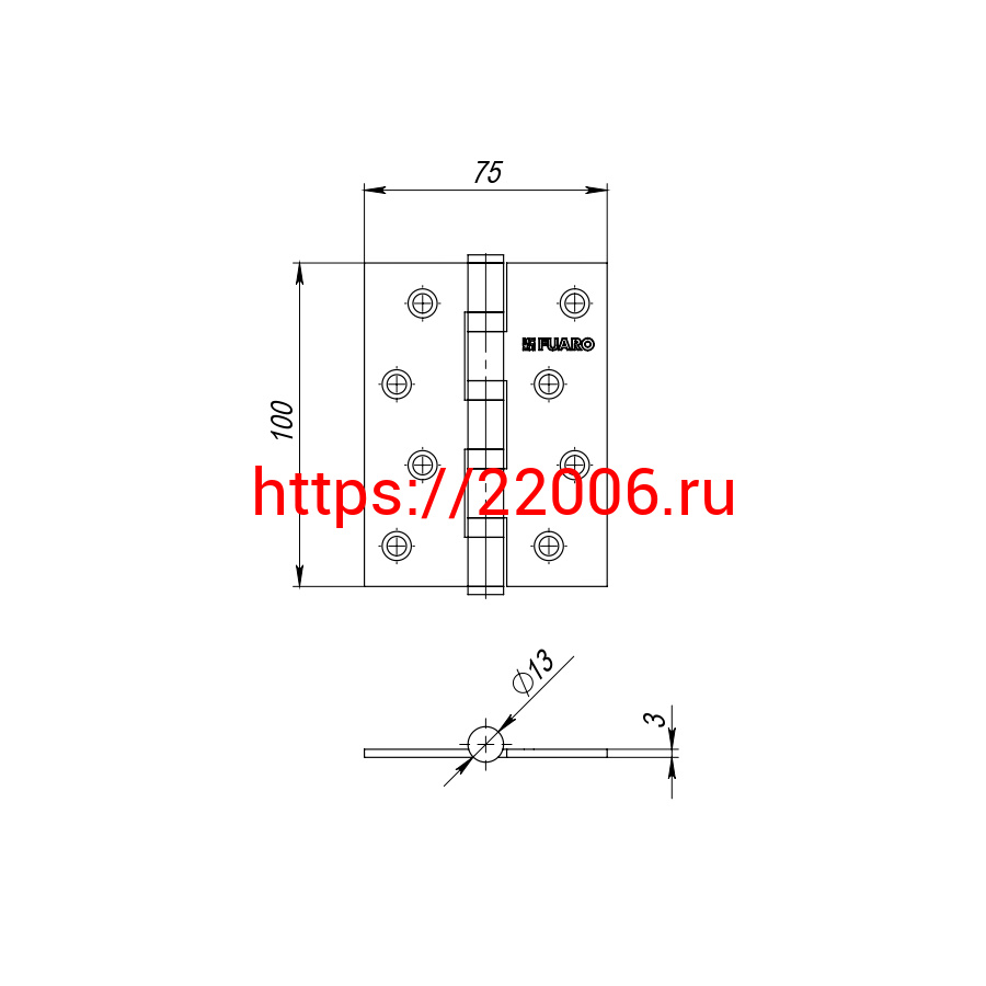 - Петля Fuaro (Фуаро) универсальная IN6400U PB (4BB 150x95x3) латунь в Воронеже недорого