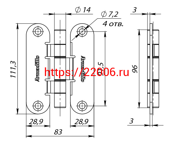 - Петля Armadillo (Армадилло) универсальная OPTIMUM SN Мат. никель в Воронеже недорого