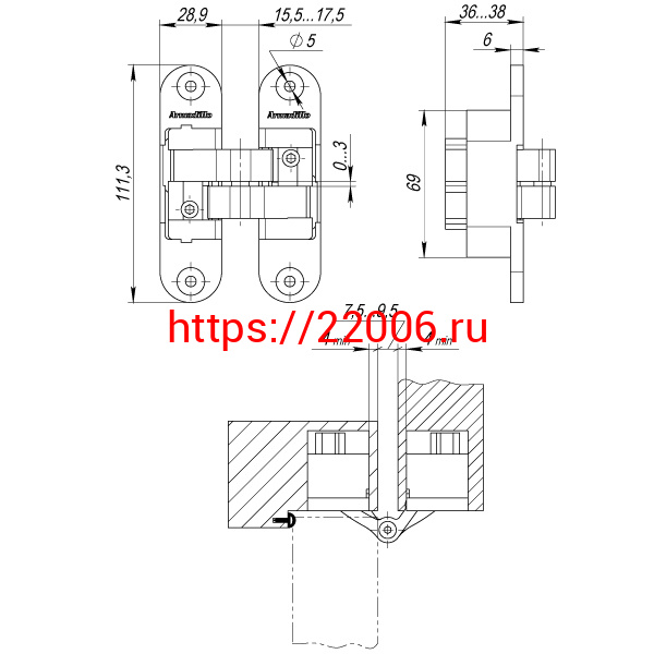 - Петля Armadillo (Армадилло) скрытой установки U3D6200L CP левая (Architect 3D-ACH 60) хром 60 кг в Воронеже недорого