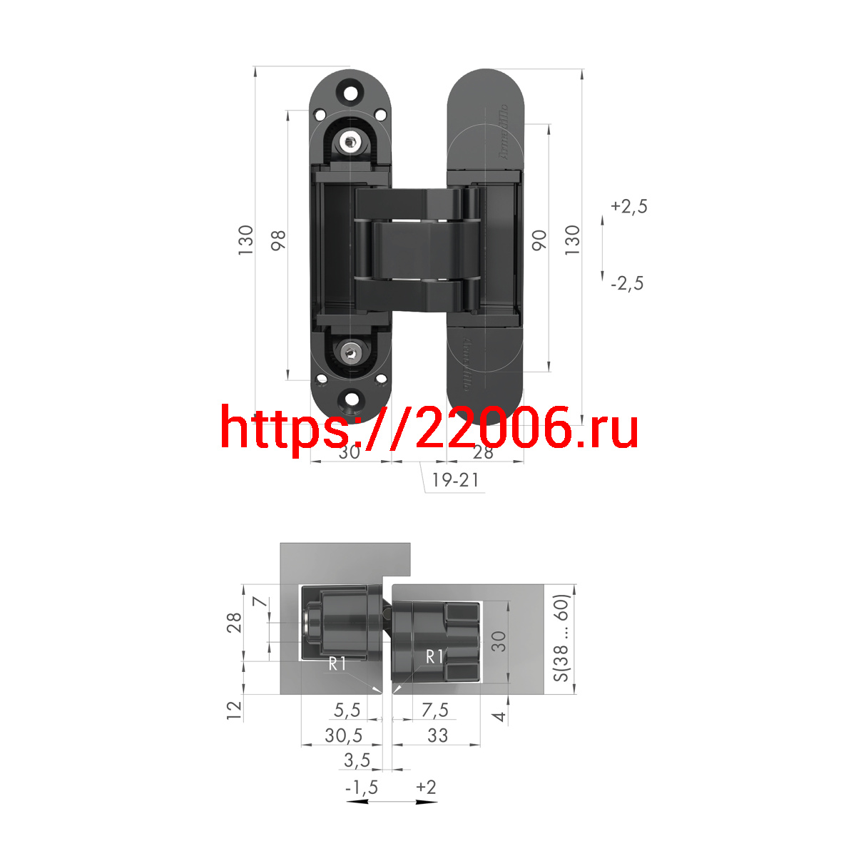 - Петля Armadillo (Армадилло) скрытой установки U3D5000.VPG AB бронза TECH в Воронеже недорого