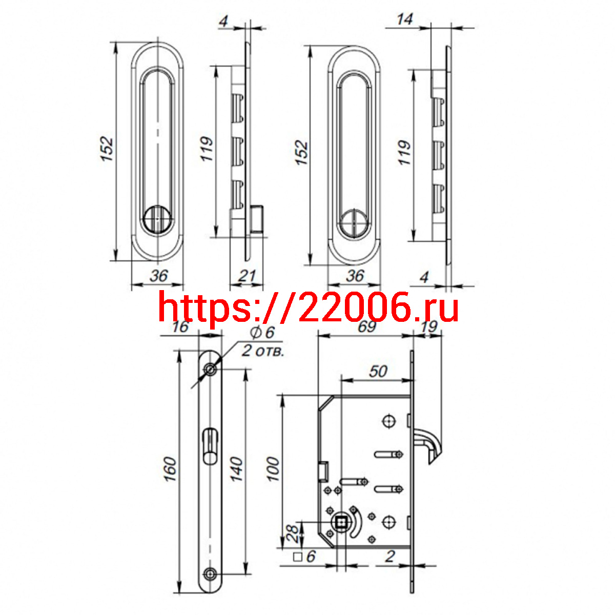 - Защелка Punto (Пунто) с ручками для раздвижных дверей Soft LINE SL-011 SG в Воронеже недорого