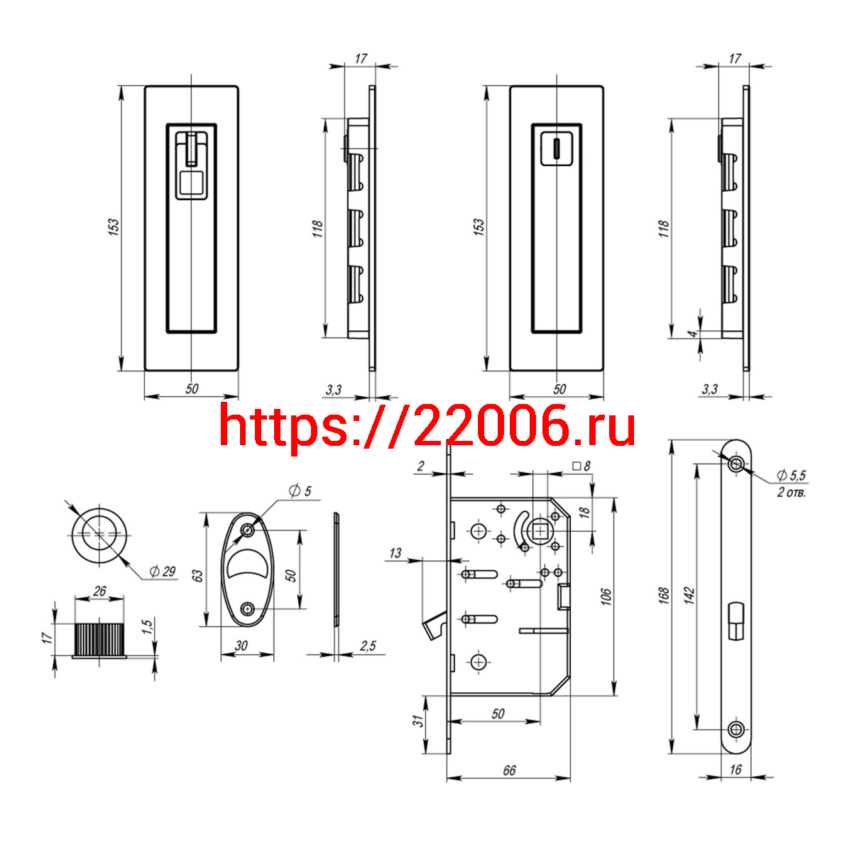 - Защелка Armadillo (Армадилло) с ручками для раздвижных дверей SH.URB153.KIT011-BK (SH011 URB) BL-26 черный в Воронеже недорого