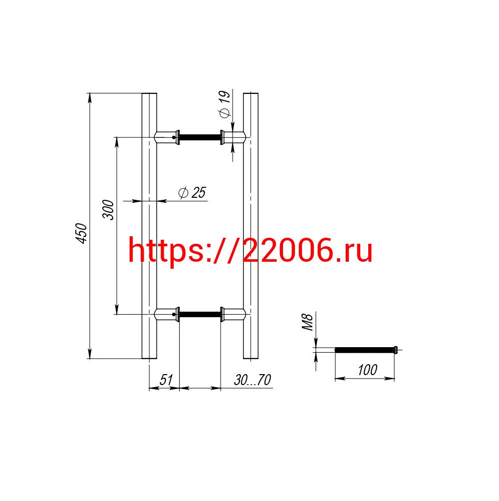 - Ручка-скоба Fuaro (Фуаро) PULL.PH25/300.22 INOX 201 (PH-22-25/300-INOX) в Воронеже недорого