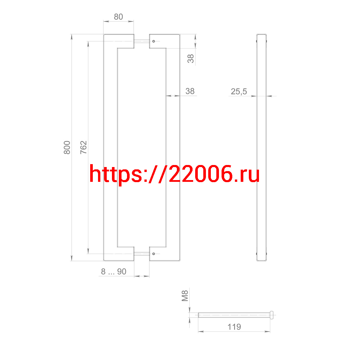 - Ручка-скоба Fuaro (Фуаро) PULL.PH38/800.26 INOX 304 (PH-26-38/800-INOX) BLACK в Воронеже недорого