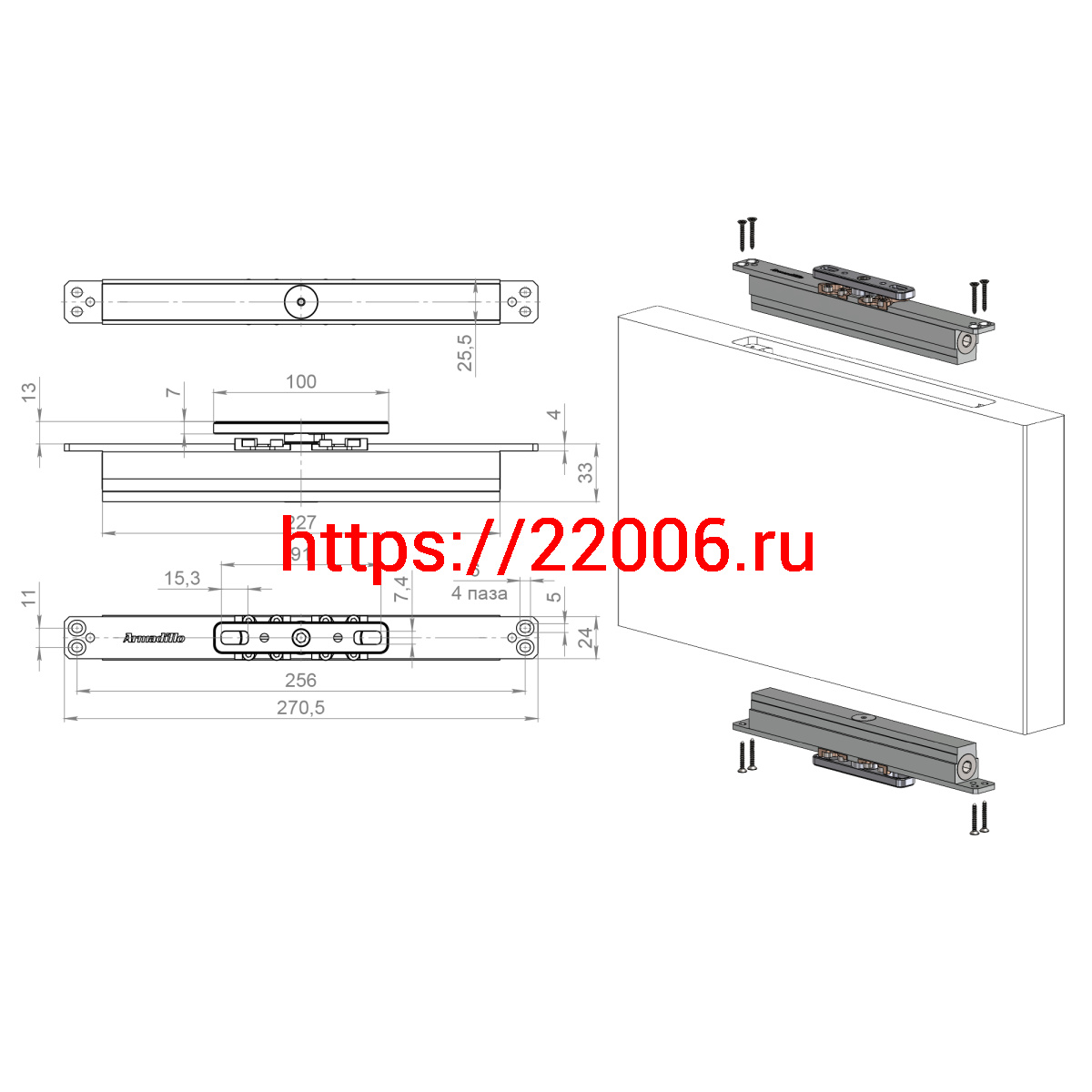 - Комплект Armadillo (Армадилло) для маятниковых дверей Pivot.150.FIX в Воронеже недорого