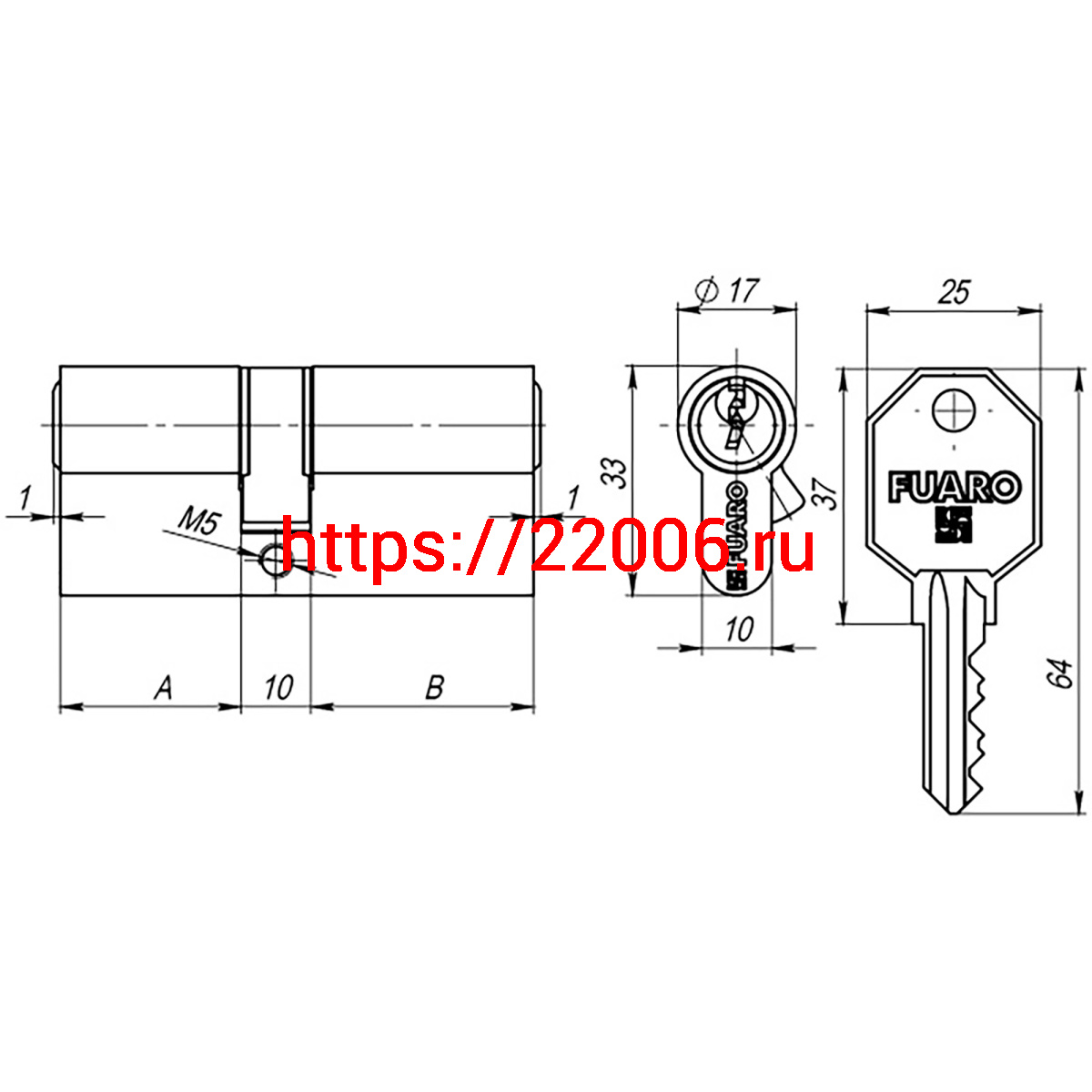 - Цилиндровый Fuaro (Фуаро) механизм (100 CA/105) 1000CAKey105(30+10+65) CP хром 3Key в Воронеже недорого