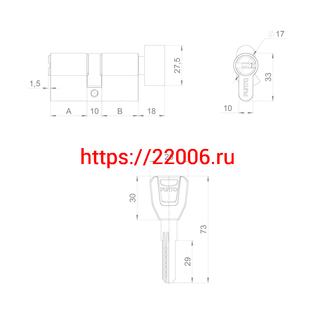 - Цилиндровый Punto (Пунто) механизм (A202/80) A2002Knob80(35+10+35) с вертушкой PB латунь в Воронеже недорого