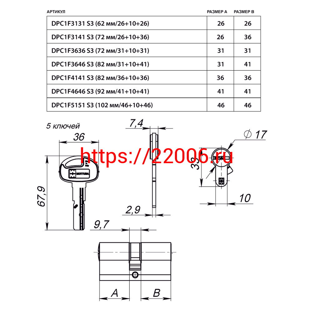 - Цилиндровый механизм Mottura (Моттура) с вертушкой DPC1F3131 S3 (62 мм/26+10+26) САТИН.НИКЕЛЬ, 5+1 кл. в Воронеже недорого
