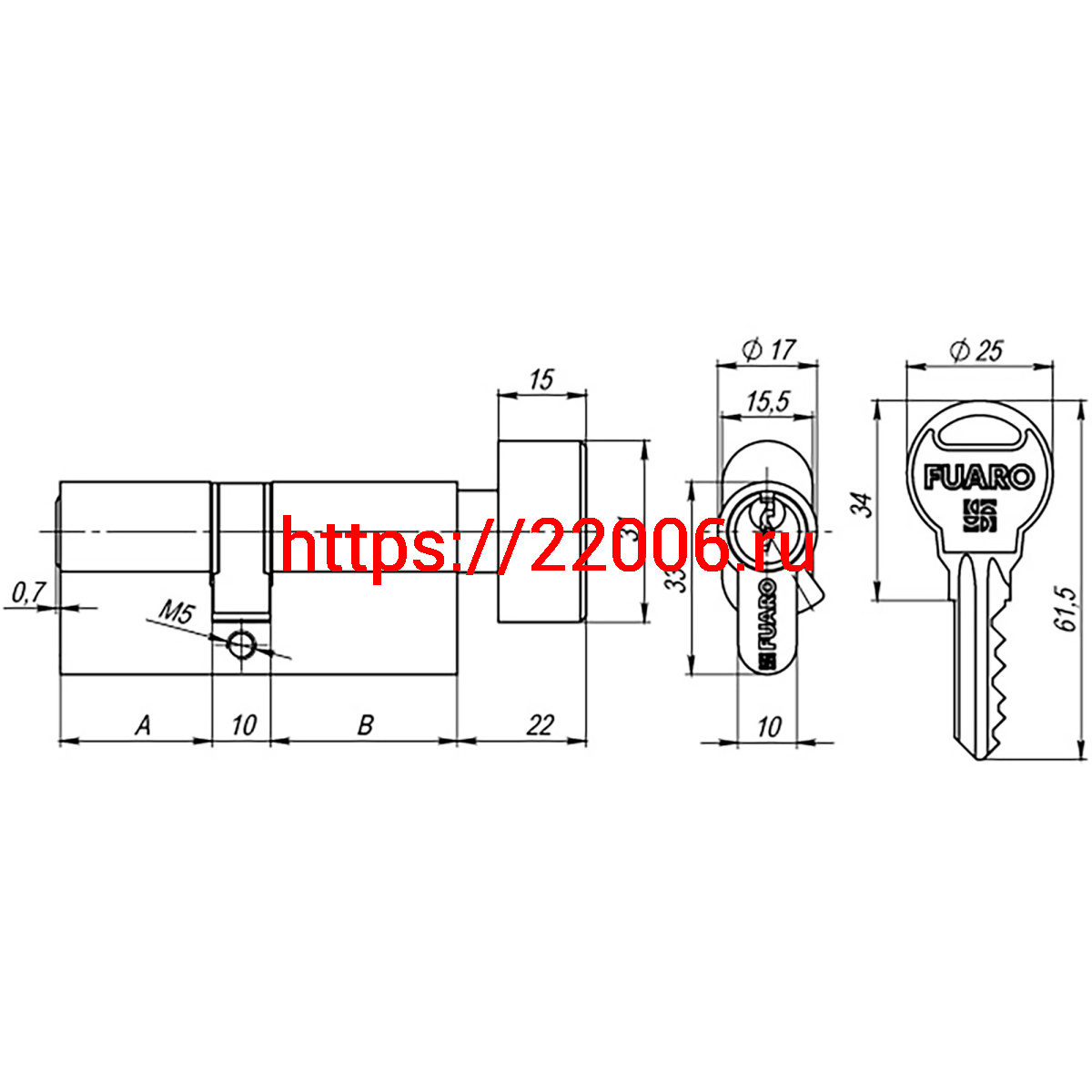 - Цилиндровый Fuaro (Фуаро) механизм (R302/60) R3002Knob60(25+10+25) CP хром 5Key с вертушкой в Воронеже недорого