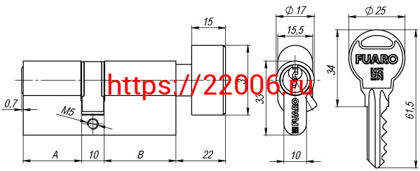 - Цилиндровый механизм Fuaro (Фуаро) с вертушкой R302/70 mm (30+10+30) PB латунь 5 кл. в Воронеже недорого