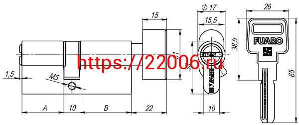 - Цилиндровый Fuaro (Фуаро) механизм (R602/90) R6002Knob90(40+10+40) CP хром 5Key с вертушкой в Воронеже недорого