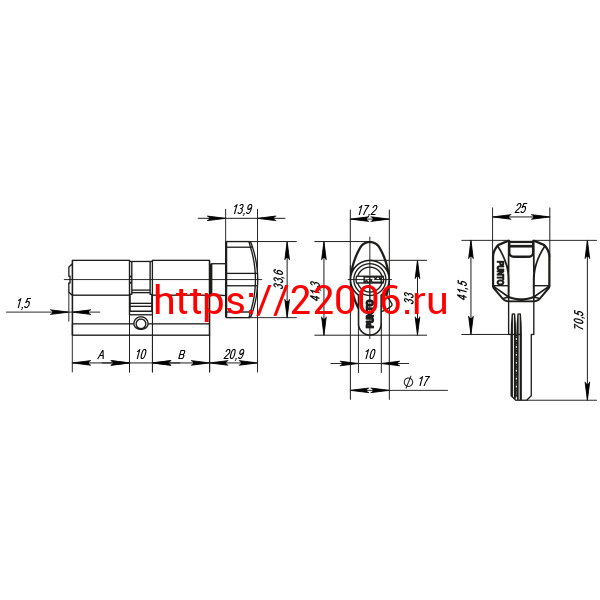- Цилиндровый Punto (Пунто) механизм (Z402/90) Z4002Knob90(40+10+40) с вертушкой PB латунь в Воронеже недорого