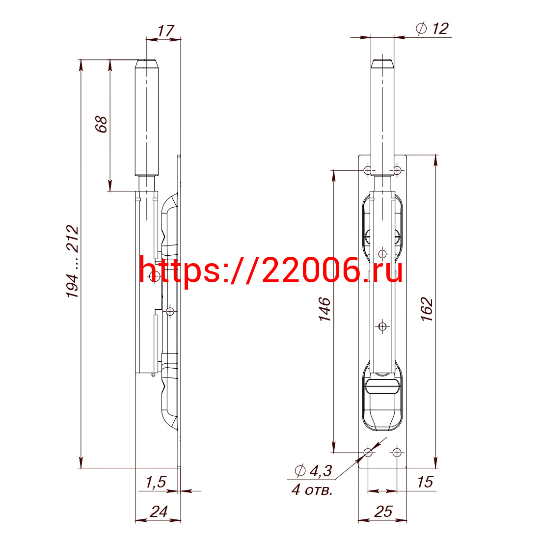 - Задвижка Fuaro (Фуаро) торцевая RIGEL-set/160 D12x80mm (TDB set 160-24) в комплекте с ригелем в Воронеже недорого