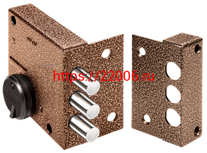- Замок Elbor (Эльбор) накладной Кремень 1.04.51.КМА, никель, сув., 3 риг., зап. коробка, медный антик /32383/ в Воронеже недорого