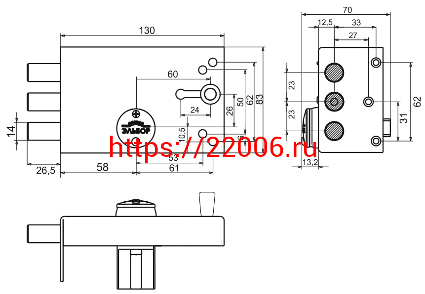 - Замок Elbor (Эльбор) накладной Лазурит 1.02.61.КМА никель, сув., 2 риг., задв.-затв., зап. кор., мед. антик /40061/ в Воронеже недорого