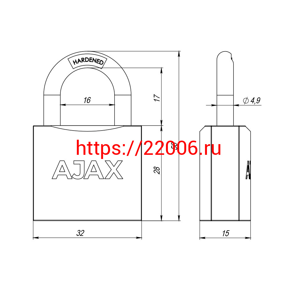 - Замок Ajax (Аякс) навесной PD-0132 (PD-01-32) 3 key англ. в Воронеже недорого