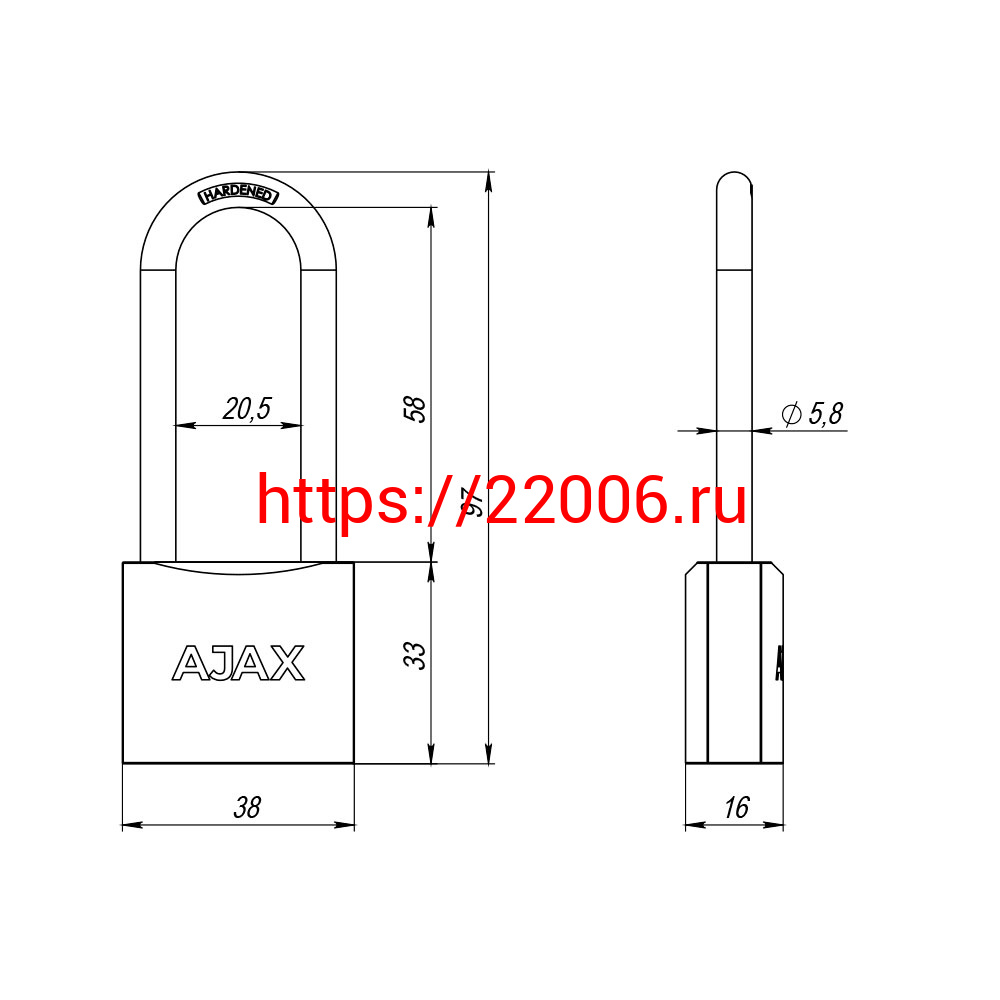 - Замок Ajax (Аякс) навесной PD-0138-L (PD-01-38-L) 3 key англ. в Воронеже недорого