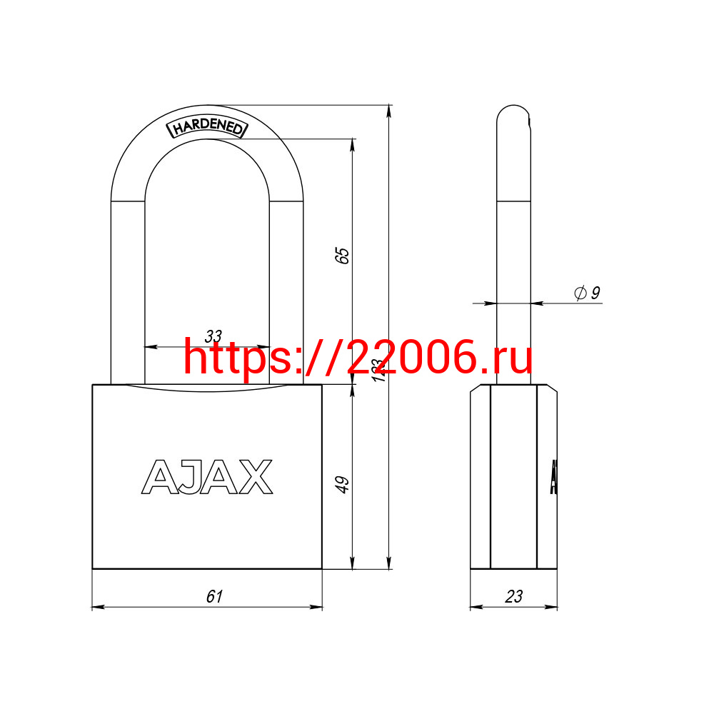 - Замок Ajax (Аякс) навесной PD-0163-L (PD-01-63-L) 3 key англ. в Воронеже недорого