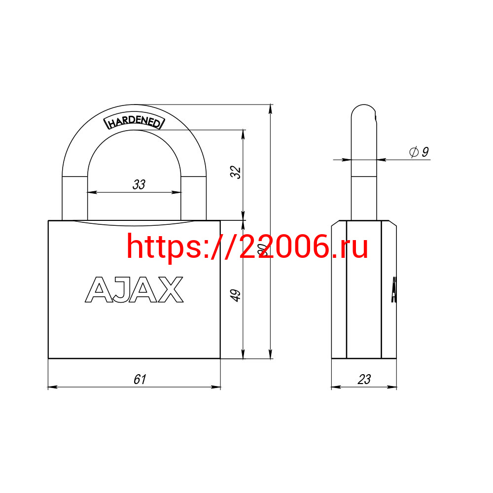 - Замок Ajax (Аякс) навесной PD-0163 (PD-01-63) 3 key англ. в Воронеже недорого