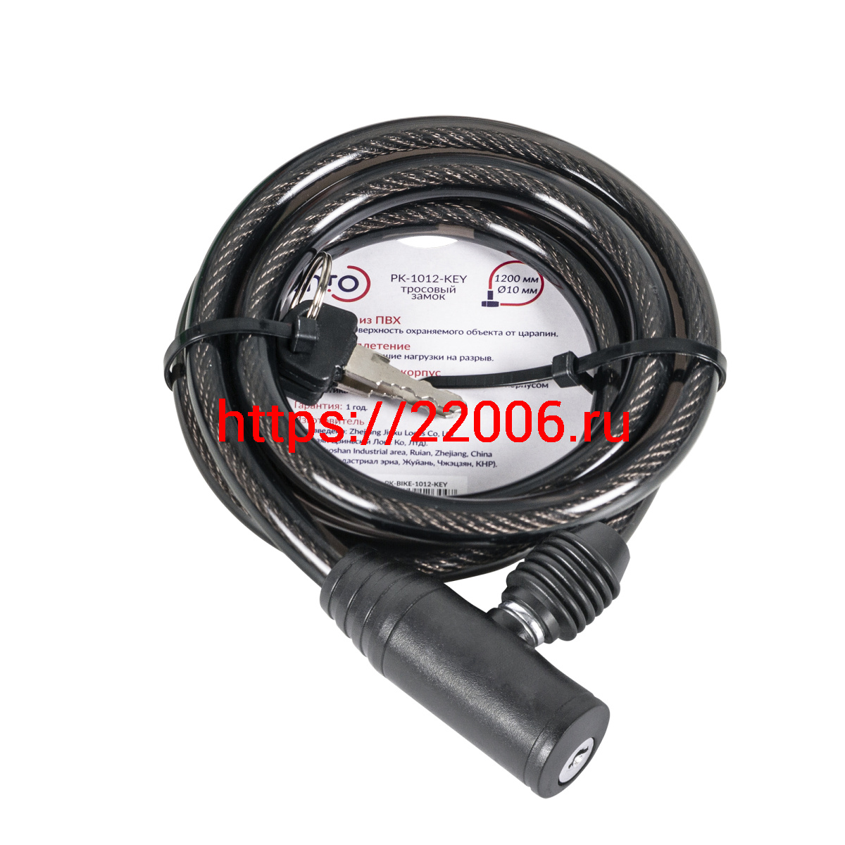 - Замок Punto (Пунто) тросовый PK-BIKE-1012-KEY (10х1200) 2key/подвес в Воронеже недорого
