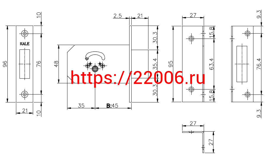 - Замок Kale kilit (Кале килит) врезной крестообразный 156/F (45 mm), 5 кл. в Воронеже недорого