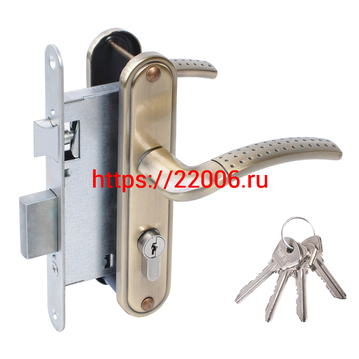 - Замок Omega (Омега) врезной цилиндровый с защёлкой в комплекте с ручкой ЗВ4-55.27 (ант.бронза), 4 кл. в Воронеже недорого