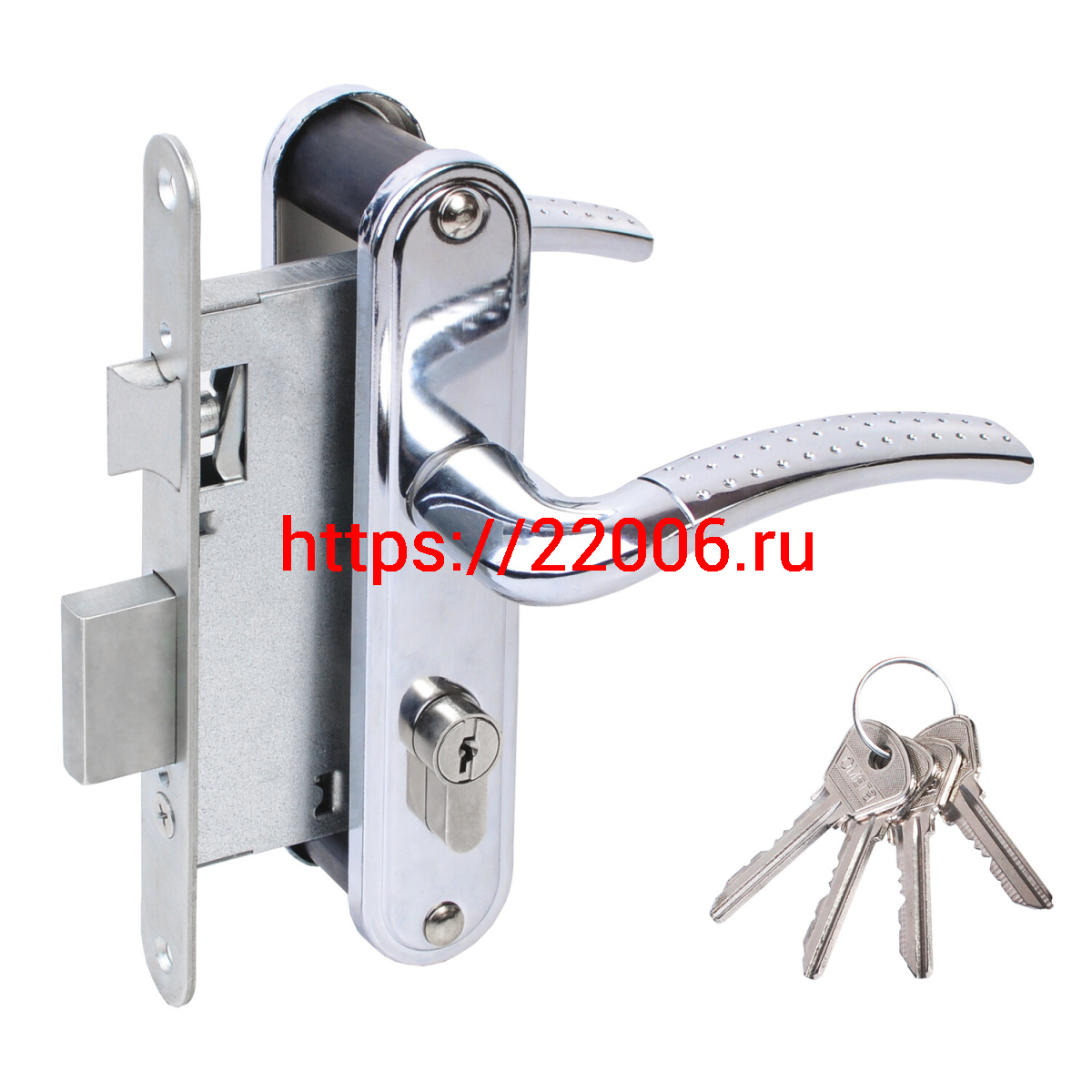 - Замок Omega (Омега) врезной цилиндровый с защёлкой в комплекте с ручкой ЗВ4-55.27 (хром), 4 кл. в Воронеже недорого