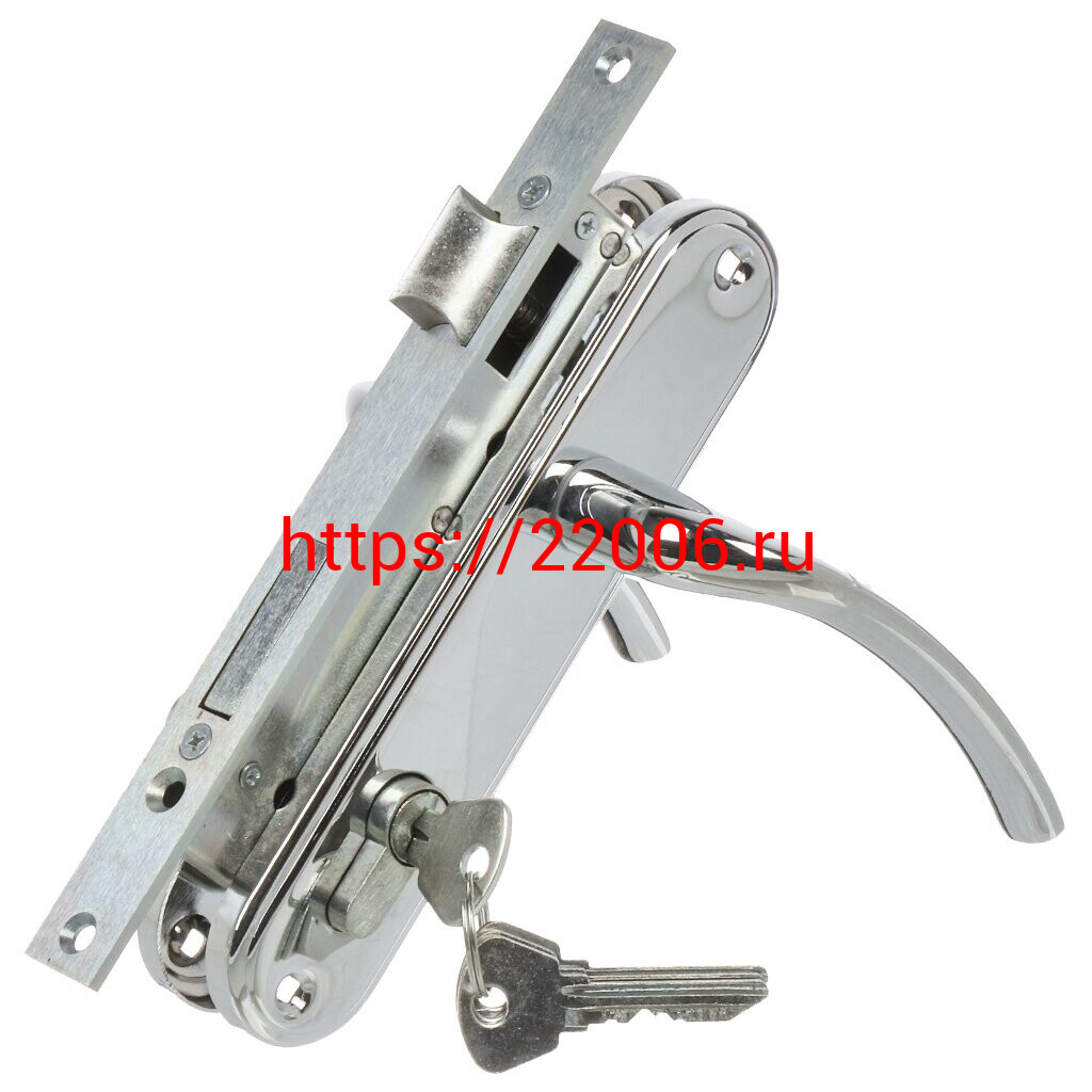 - Замок Omega (Омега) врезной цилиндровый с защёлкой в комплекте с ручкой ЗВ4-70.27 (хром), 4 кл. в Воронеже недорого