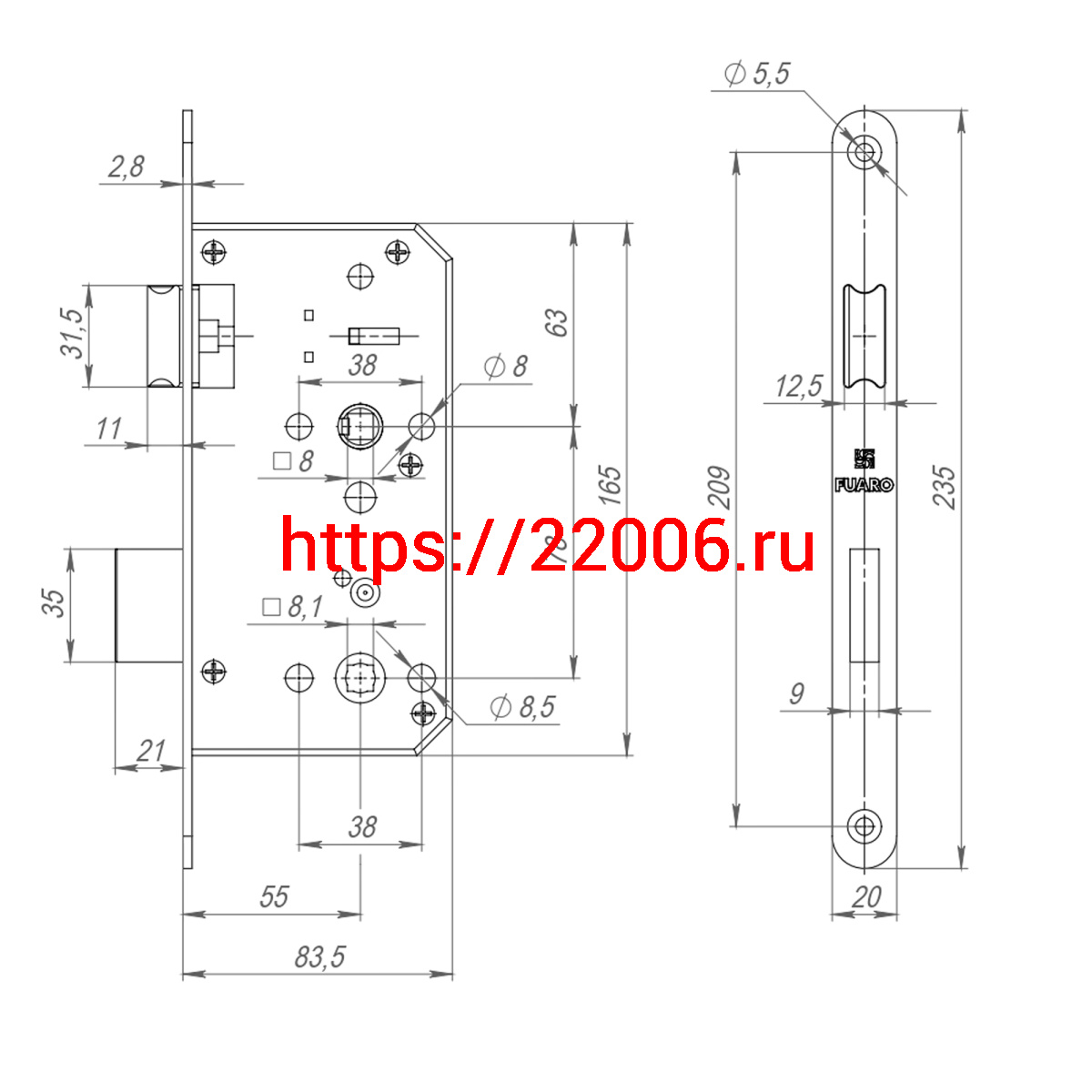 - Замок Fuaro (Фуаро) врезной DD.INOX/WC-55.78 в Воронеже недорого