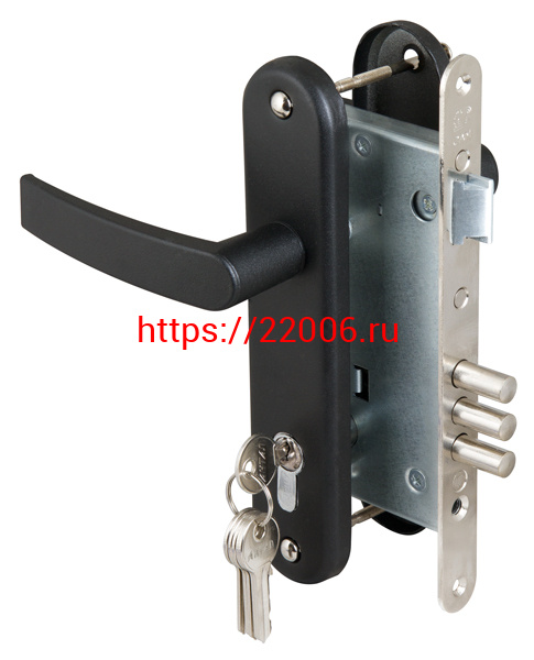 - Замок Sam (Сам) врезной цилиндровый с защёлкой в комплекте с ручкой ЗВ4-3 (черный муар), 5 кл. /78401/ в Воронеже недорого