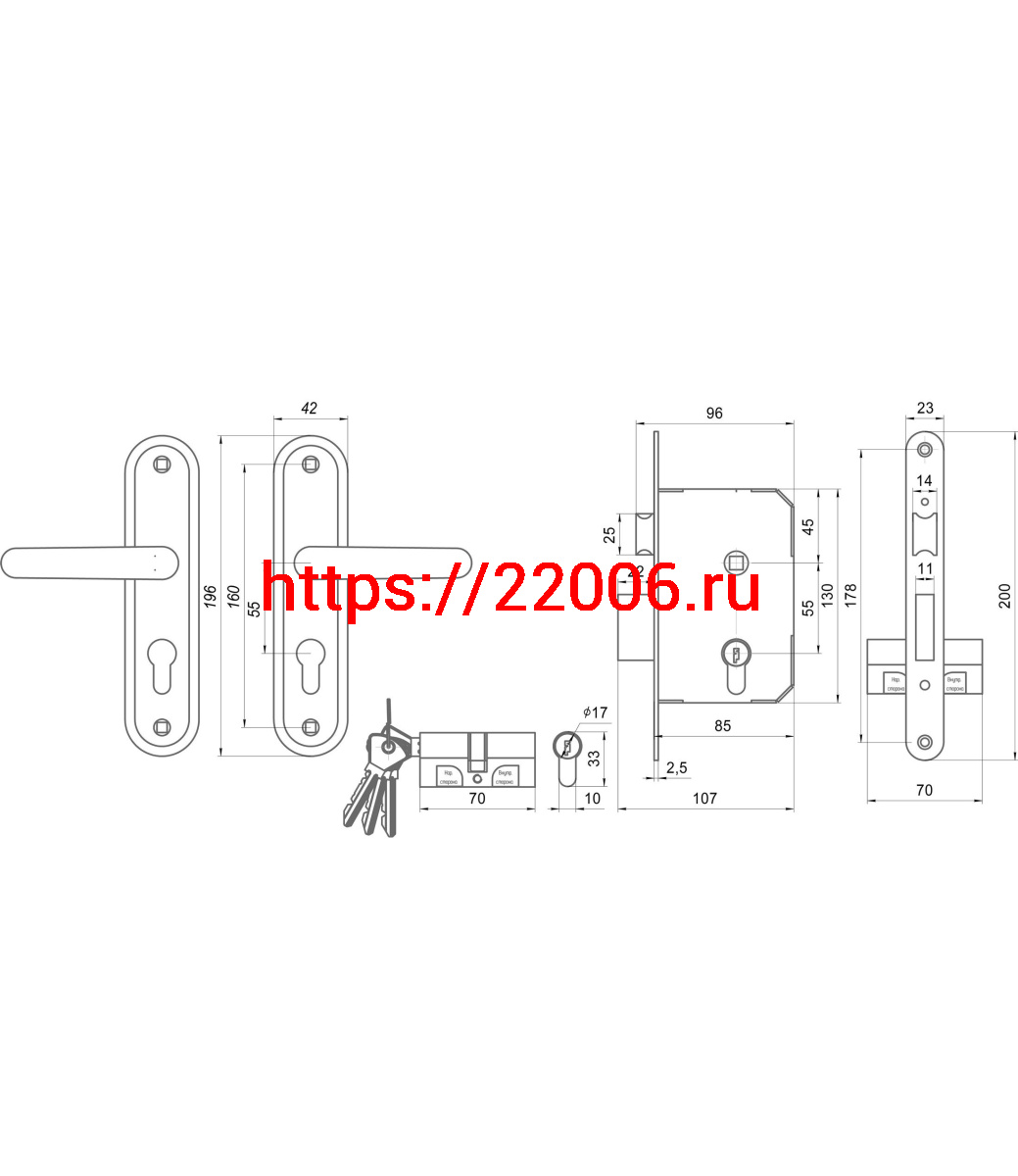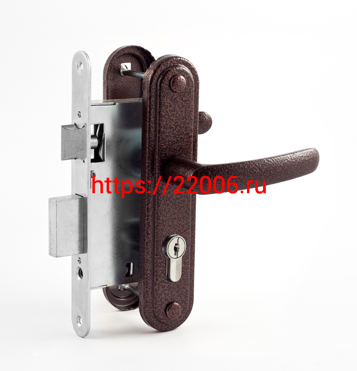 - Замок Omega (Омега) врезной цилиндровый с защёлкой в комплекте с ручкой ЗВ7.02 (медь), 4 кл. в Воронеже недорого