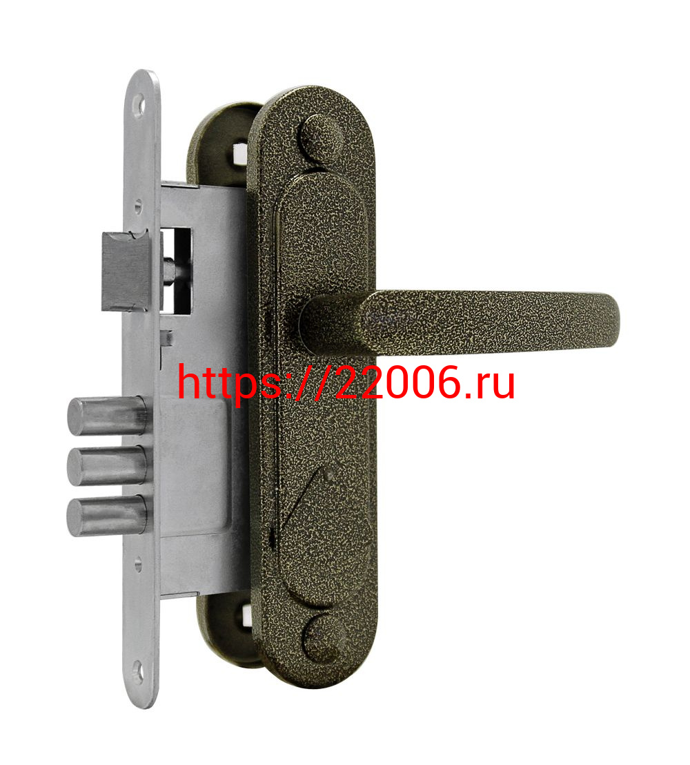 - Замок Omega (Омега) врезной сувальдный с защёлкой в комплекте с ручкой ЗВ9.1-01 (бронза), 3 кл. в Воронеже недорого