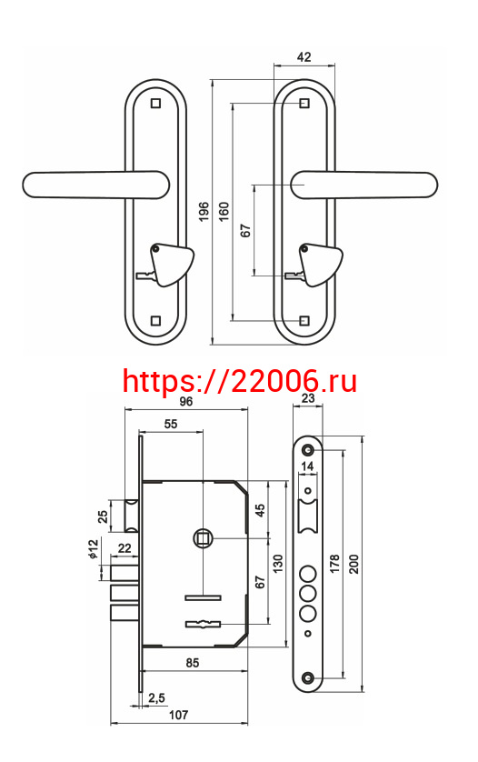 - Замок Omega (Омега) врезной сувальдный с защёлкой в комплекте с ручкой ЗВ9.1-02 (бронза), 3 кл. в Воронеже недорого