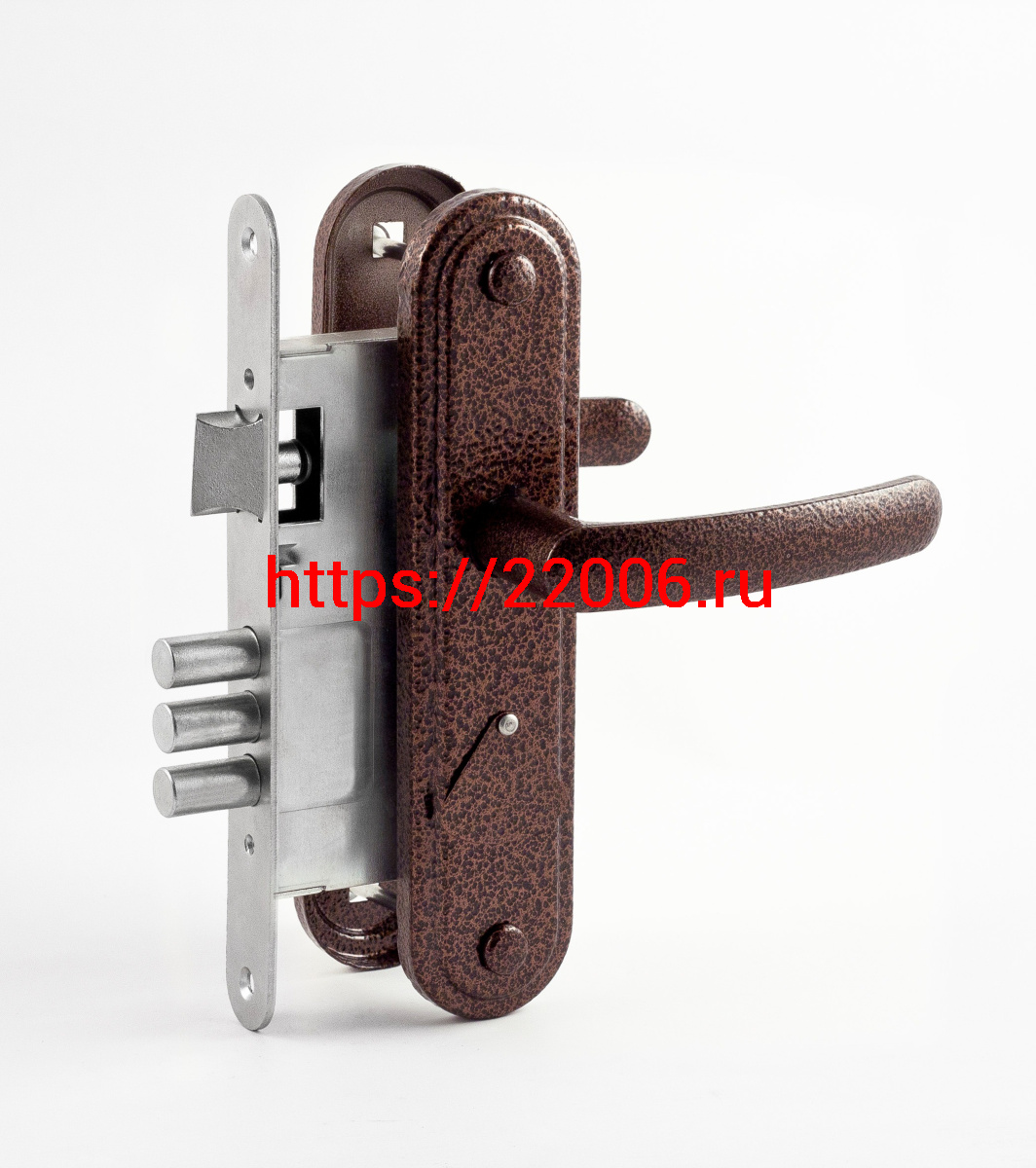 - Замок Omega (Омега) врезной сувальдный с защёлкой в комплекте с ручкой ЗВ9.1-02 (медь), 3 кл. в Воронеже недорого