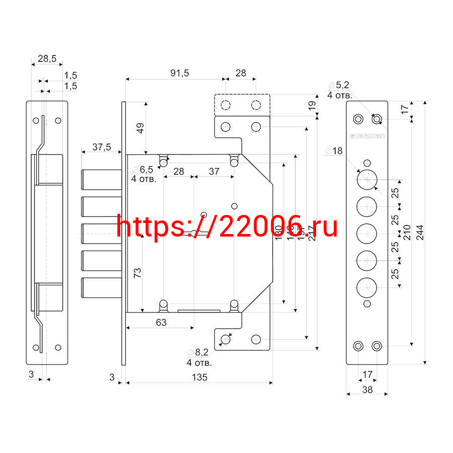 - Врезные электромеханические замки