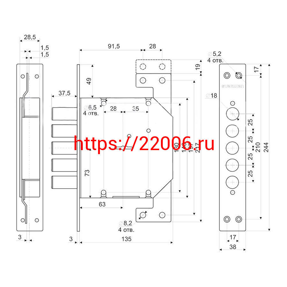 - Врезные электромеханические замки