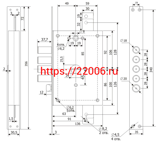 - Замок Guardian (Гардиан) врезной сувальдный с защёлкой МАКСИМУМ ЗВ 21.12 ДТ с тягами (левый), 5 кл. /123:0219/ в Воронеже недорого