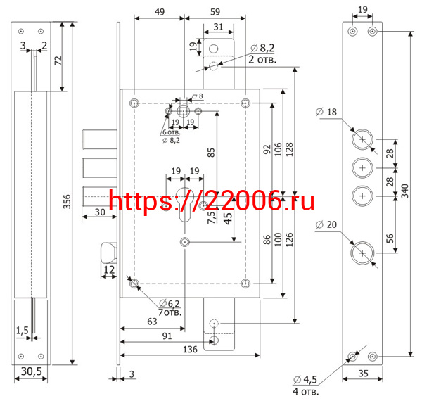 - Корпус Guardian (Гардиан) врезного замка с защёлкой ЗВ 22.12 с тягами (без планки) /123:131/ в Воронеже недорого