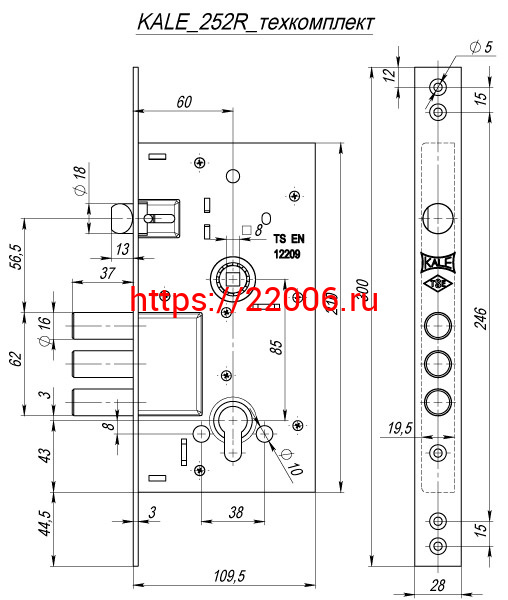 - Корпус Kale kilit (Кале килит) врезного цилиндрового замка с защёлкой 252/R w/b (тех. комплектация) в Воронеже недорого