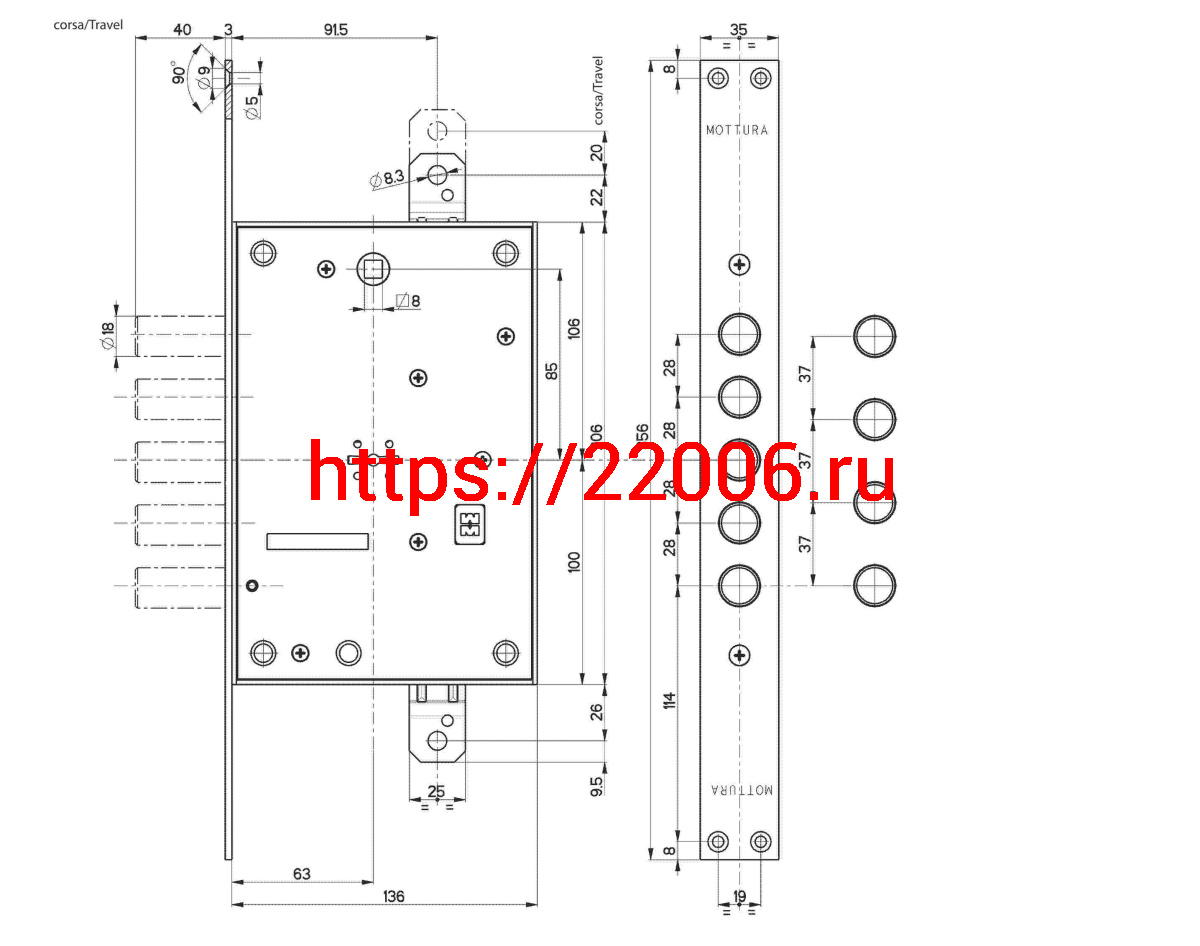 - Замок Mottura (Моттура) врезной сувальдный 52.783 (универсальный), без накл. в Воронеже недорого
