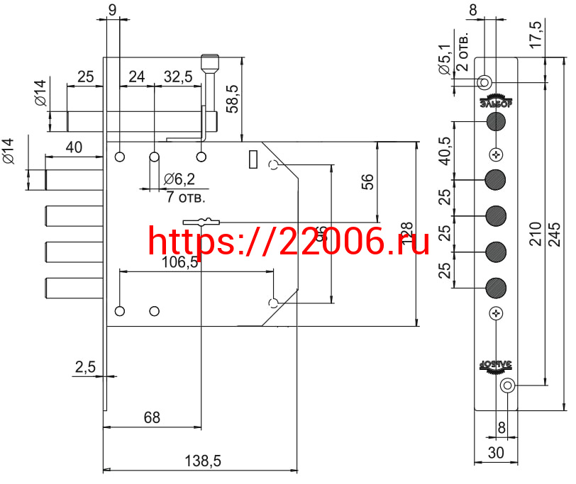 - Замок Elbor (Эльбор) врезной сувальдный с задвижкой Базальт 1.05.02, 5 кл. /00396/ в Воронеже недорого