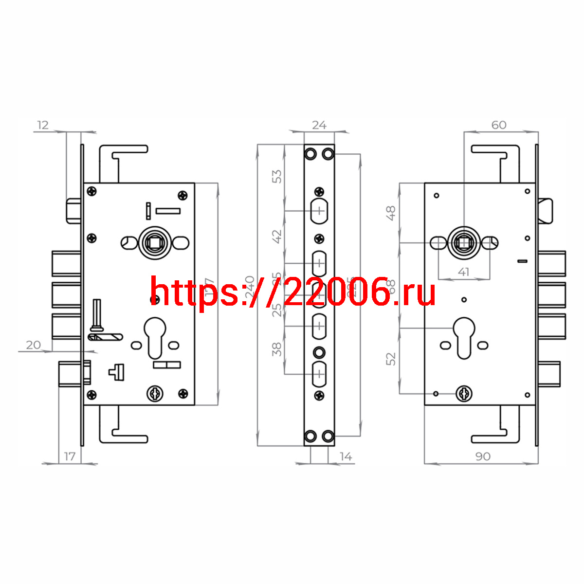 - Корпус Ajax (Аякс) врезного замка без ц/механизма CH-09CT в Воронеже недорого