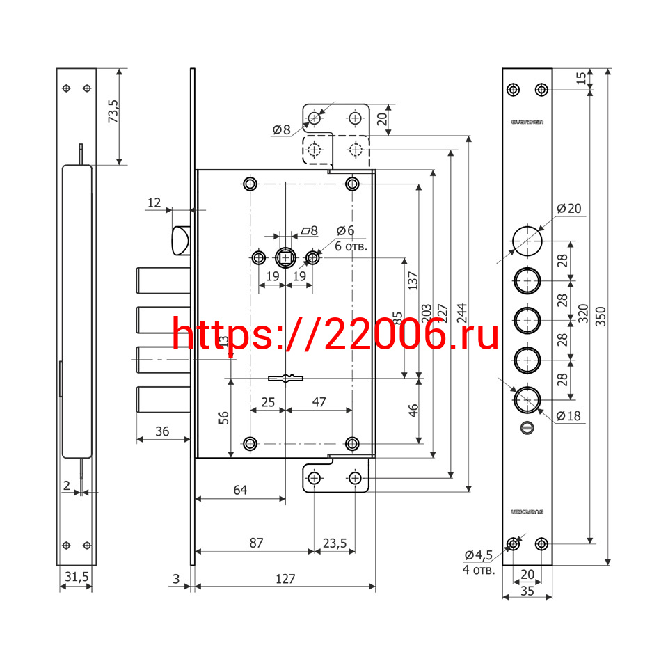 - Замок Guardian (Гардиан) врезной сувальдный с защёлкой ЗВ 71.14 Т с тягами, 5 кл. /128:4136/ в Воронеже недорого